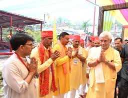 Jammu, April 23: Lieutenant Governor Manoj Sinha on Thursday attended the foundation day of Sarv Shakti Chandi Mata Mandir at Dhammi, Nagrota.