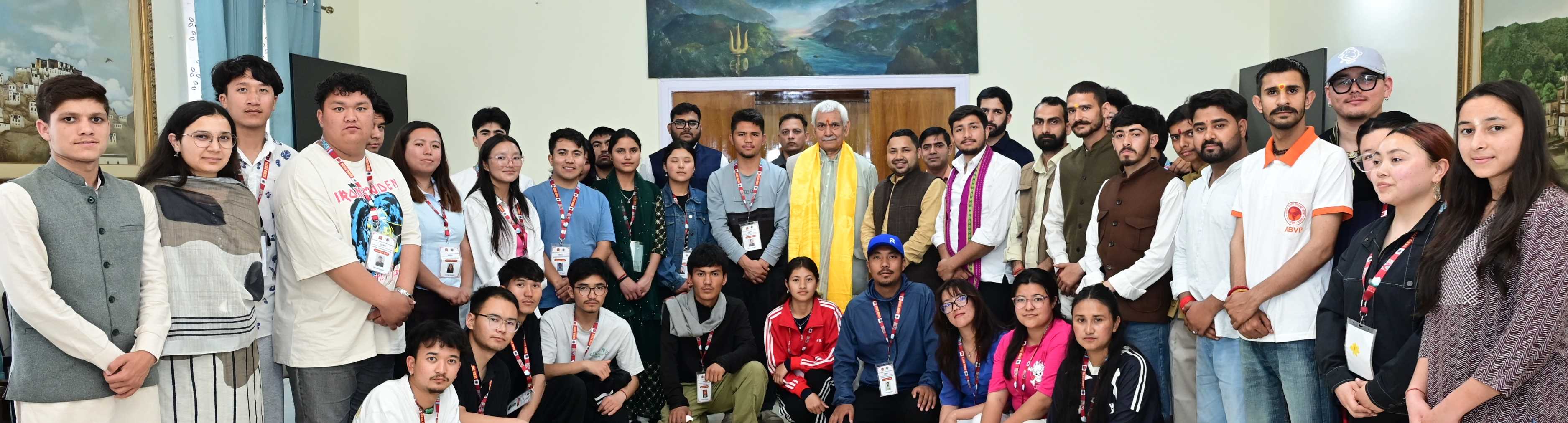 Lieutenant Governor Shri Manoj Sinha today interacted with the youth from Ladakh visiting Jammu as part of the Akhil Bharatiya Vidyarthi Parishad’s (ABVP) "Students’ Experience in Regional Understanding (SERU) – Rashtriya Ekatmata Yatra 2026”, at Lok Bhavan, Jammu.