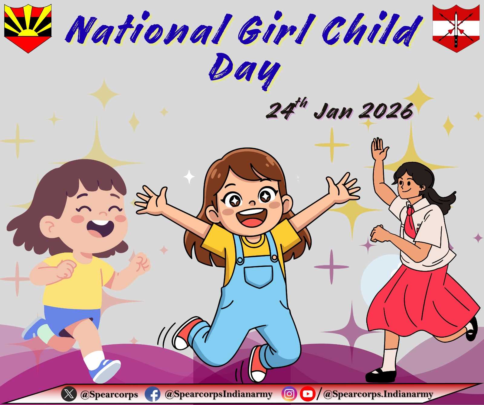 Dimapur, Jan 24: Lt Gen Abhijit S Pendharkar, General Officer Commanding of Spear Corps, along with all ranks, extended heartfelt greetings to the people and the energetic girl children of the Northeast on the occasion of National Girl Child Day. The message highlighted the importance of empowering girls, promoting education, and nurturing their talents to build a strong and inclusive society.