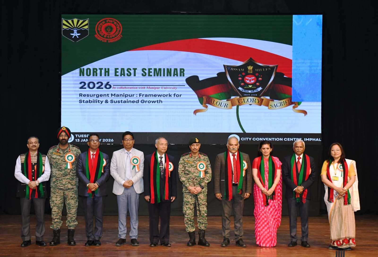 Imphal,, Jan 13: Assam Rifles under Spear Corps, in collaboration with Manipur University, successfully hosted the North-East Seminar 2026 at Imphal on January 13, themed “Resurgent Manipur: Framework for Stability & Sustained Growth.”