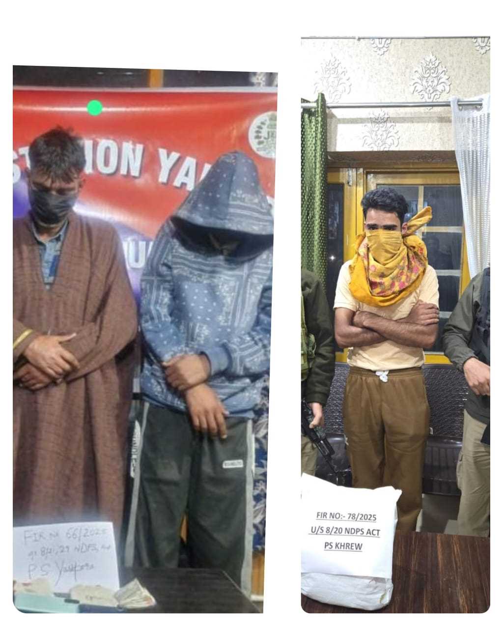 Continuing its efforts to eradicate the menace of drugs from the society, police have arrested 03 drug peddlers in Kulgam & Awantipora and recovered contraband substance from their possession.