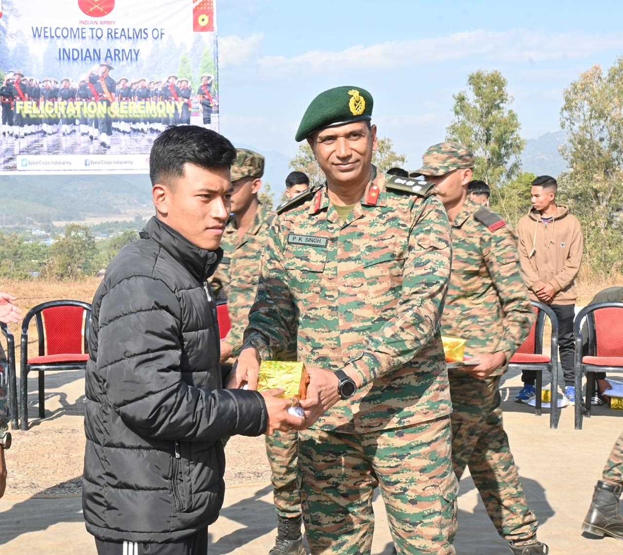 Yaingangpokpi, , Dec 24 – The Spear Corps organized a felicitation ceremony at Yaingangpokpi to honor the successful selection of Agniveer aspirants trained under the battalions of the Red Shield Division. The ceremony celebrated the dedication and hard work of young candidates who recently cleared the rigorous selection process under the Agnipath Scheme.