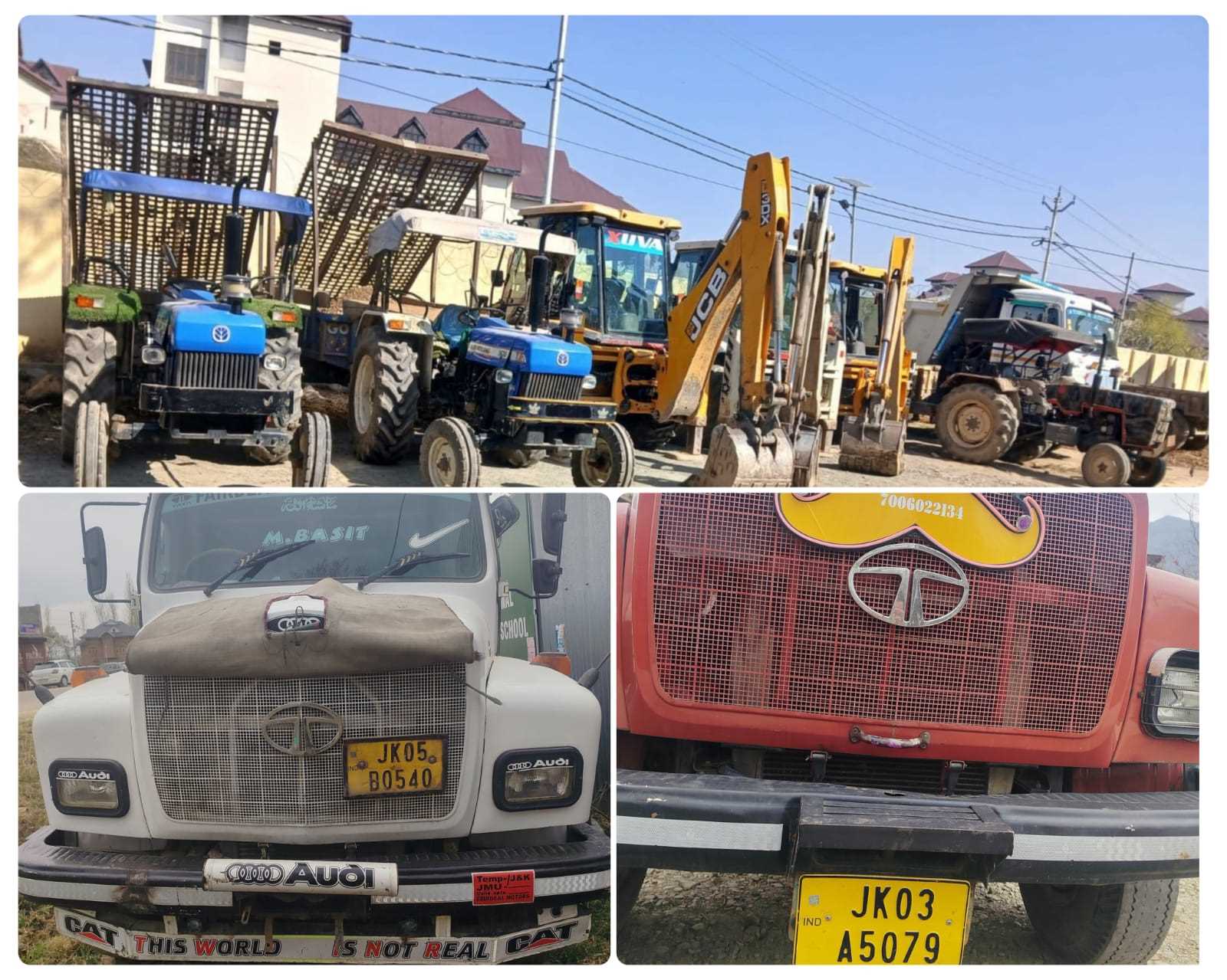 Srinagar, Mar 8: J&K Police have seized six vehicles and two JCBs involved in illegal extraction & transportation of minerals in Anantnag, Ganderbal.