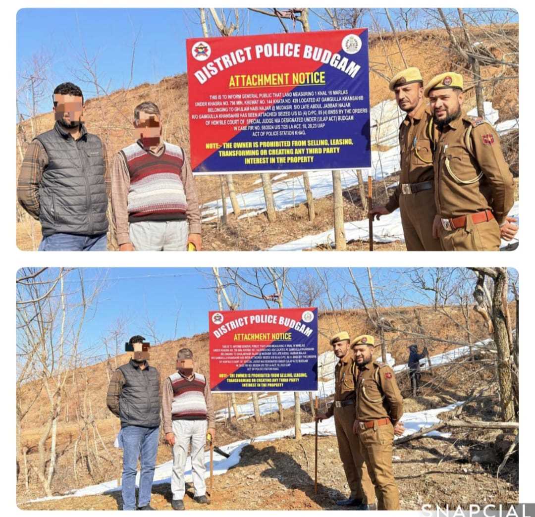 Budgam, Feb 21: In a strong and decisive strike against terror operatives and their support structures, Police in Budgam have attached immovable property of a JKNOP involved in FIR No. 58/2024 of Police Station Khag, registered under Sections 7/25, 18, 20, and 23 of the Unlawful Activities (Prevention) Act (UAPA).