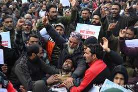 Srinagar, Feb 12: Daily wagers and casual labourers from various government departments on Thursday staged a protest at Sher-i-Kashmir Park in Srinagar, demanding immediate regularization of their services.