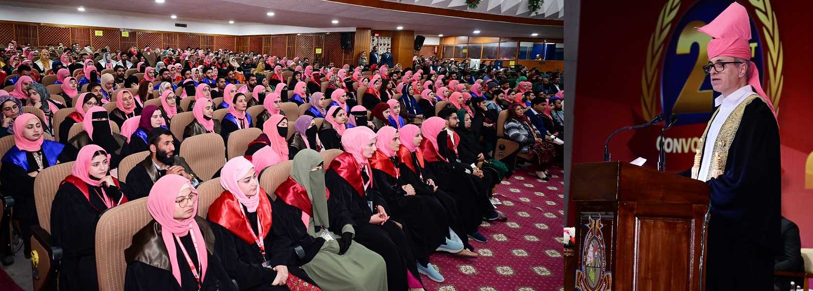 Srinagar, Feb 26: Srinagar, Feb 26: Addressing the 21st convocation of the University of Kashmir, Chief Minister and Pro-Chancellor Omar Abdullah highlighted Jammu & Kashmir’s evolving economy, describing it as a hub for innovation, participatory governance, and sustainable development. The event was attended by Vice President of India C. P. Radhakrishnan, Lieutenant Governor Manoj Sinha, Minister for Education Sakina Itoo, Vice-Chancellor Prof. Nilofer Khan, and other dignitaries.