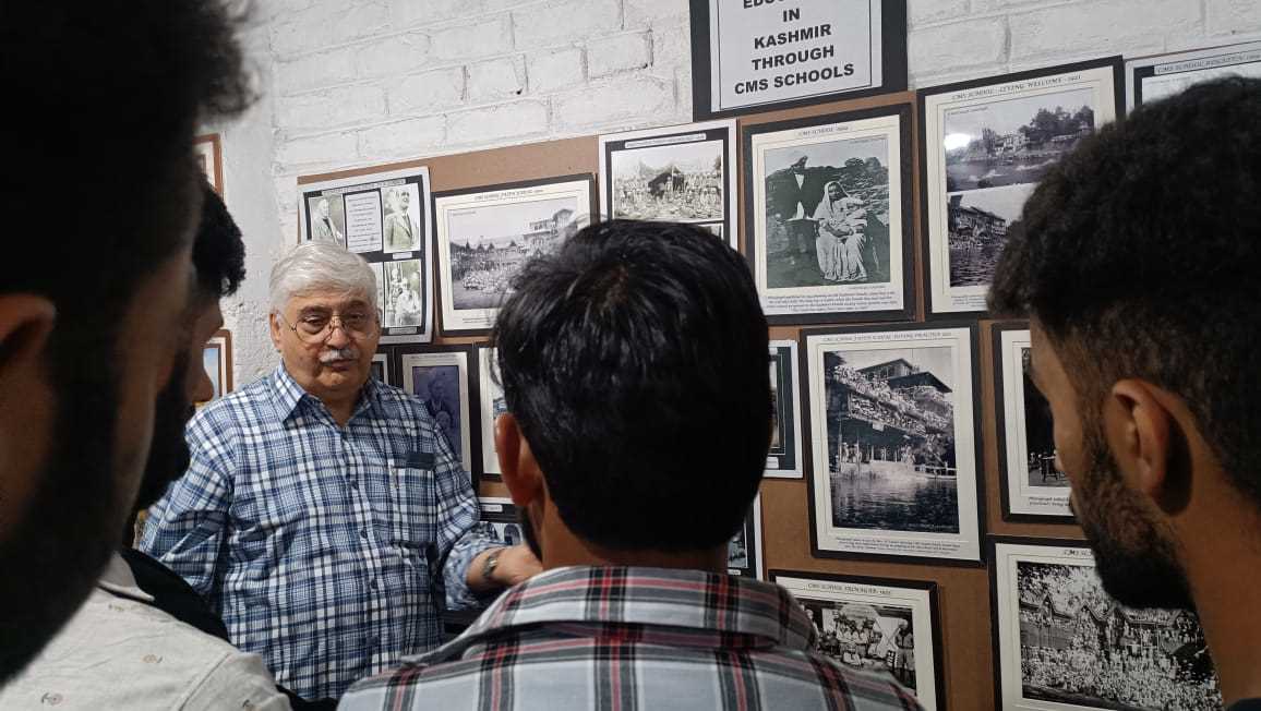 During the field trip, students were guided by Mr. Showkat Rashid Wani, former Power Development Commissioner, Kashmir, and curator of the Nostalgic Kashmir exhibition. Mr. Wani guided the students through a historical journey, tracing the condition of Dal Lake and other major water bodies in Kashmir, dating back to the 1850s.